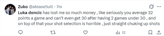 一些球迷认为东契奇多次选择糟糕的出手选择,而且出现太多低级失误。
